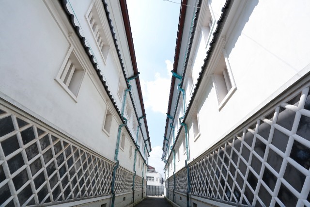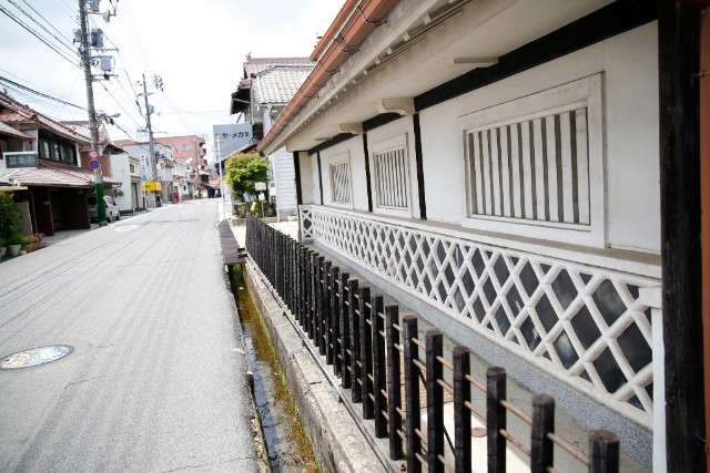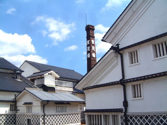 煉瓦作りの煙突が連なる一帯には、なまこ壁や白壁の酒蔵、赤瓦の屋根、黒塗りの格子など歴史を感じさせる通りが続いています。