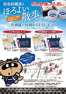 酒蔵通りの散策のお供に、各酒蔵で特典が受けられる「ほろ酔い散歩セット」なんてものも販売してます。