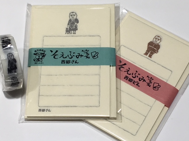 オエステ会やしんぷくオリジナル品に於いても、以前紹介させていただきました西郷さん柄のマスキングテープとそえぶみ箋などがあります。
