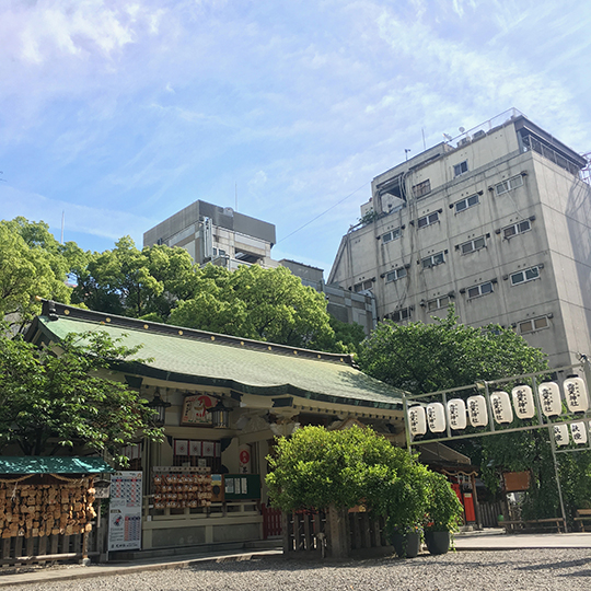 実は露天神社には、天神さんの他に、境内末社に水天宮さん、金刀比羅宮さん、開運稲荷社、難波神明社がいらっしゃいます。その中でも水天宮さんと金刀比羅宮さんは同じ社におられ、セーラー万年筆の石丸氏と長原氏が来阪の際、楽しい会食後、宿への帰り道の途中に立ち寄った際に、この社に行き着いたとのこと。考えると、石丸氏は「水(インク)」、長原氏は「金(万年筆)」に関することを職としている。そのふたつの神様がひとつの社にいらっしゃることは、これまた運命的であるとお二人は思われたそうです。それから石丸氏は露天さん、というよりも水天宮さんと金刀比羅宮さんへのお参りを欠かさないとのことです。