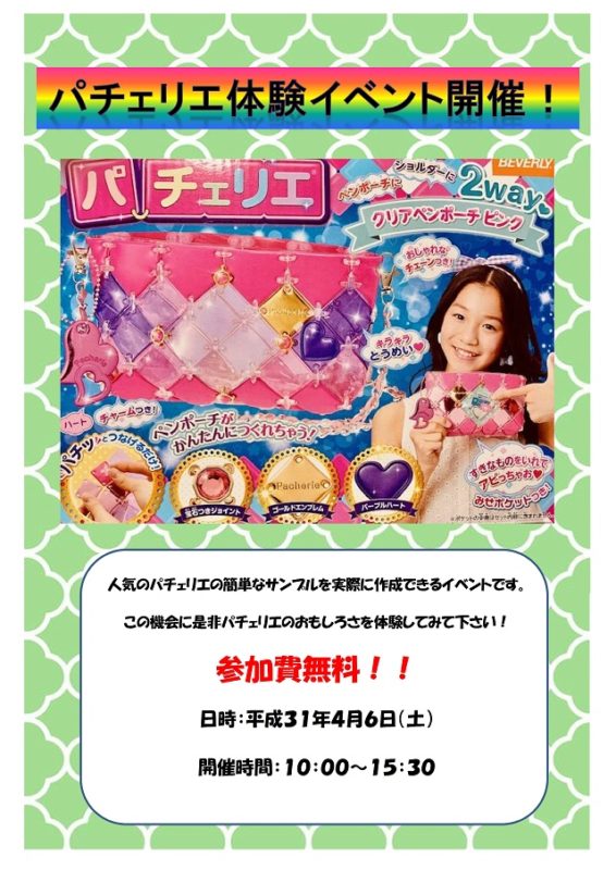 4月6日(土) ビバリー パチェリエ体験イベント 10:00~15:30