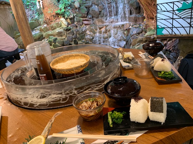 夏に来ても涼しく、平成の名水100選に選ばれた冷たい湧水で食べるそうめんは格別です。