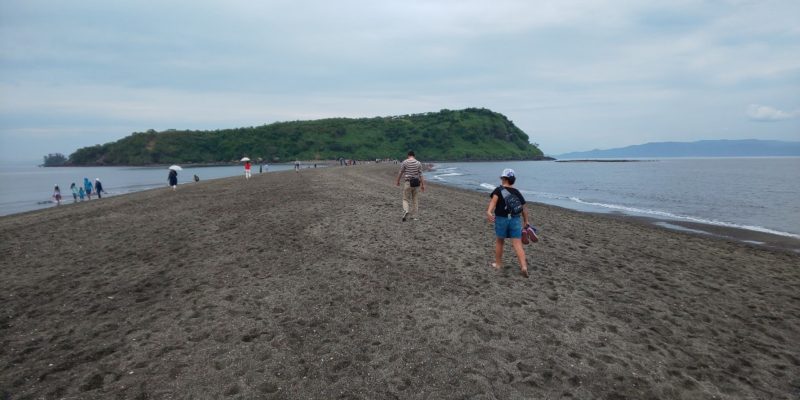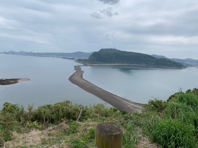 まず①知林ヶ島は錦江湾に浮かぶ無人島なのですが、3月から10月にかけての大潮又は中潮の干潮時に、長さ約800mの砂の道が現れて、島に歩いて渡ることができます。陸とつながる島であることから縁結びの島とも呼ばれています。