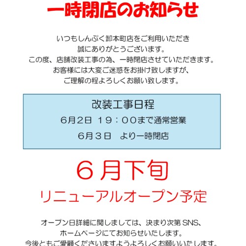 文具のしんぷく卸本町店リニューアルのお知らせ