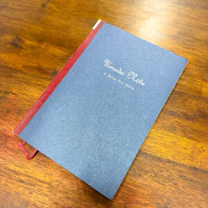 案の定、全く売れずで、作ったものを売り切るのに果たして何年かかかったことやら。そしてそれから約10年の時を経て、何度かのインクブームの波があり、万年筆で書いても滲まず、裏抜けしない紙を使ったノートを作りたい。と性懲りも無くノートを作る相談を山本社長にしました。紙選びの様子からインスタグラムライブで放映し「これだ!」という紙を選んで、2021年に新Umeda Noteが誕生…するはずだったのが、選んだ本文用紙のロット間の仕様のバラツキにより、万年筆インクで思っていたとおりの筆記が実現できなかったのです。急遽販売中止、全数作り直しとなり、企画はまた振り出しに戻りました。再度紙選びからやり直し、最終的に私が最高だと思う紙、HSライトフォースとめぐりあいました。インクの発色もよく、色変化もあまりしない、滲み、裏抜けもない、そして何より用紙の白色度に感動しました。高白色のコピー用紙などには勝てないにしても、印刷用紙、筆記用紙の中ではかなり白い紙とめぐりあうことができました。嵩高の微塗工紙であるにも関わらず、その雰囲気がないのも気に入っています。