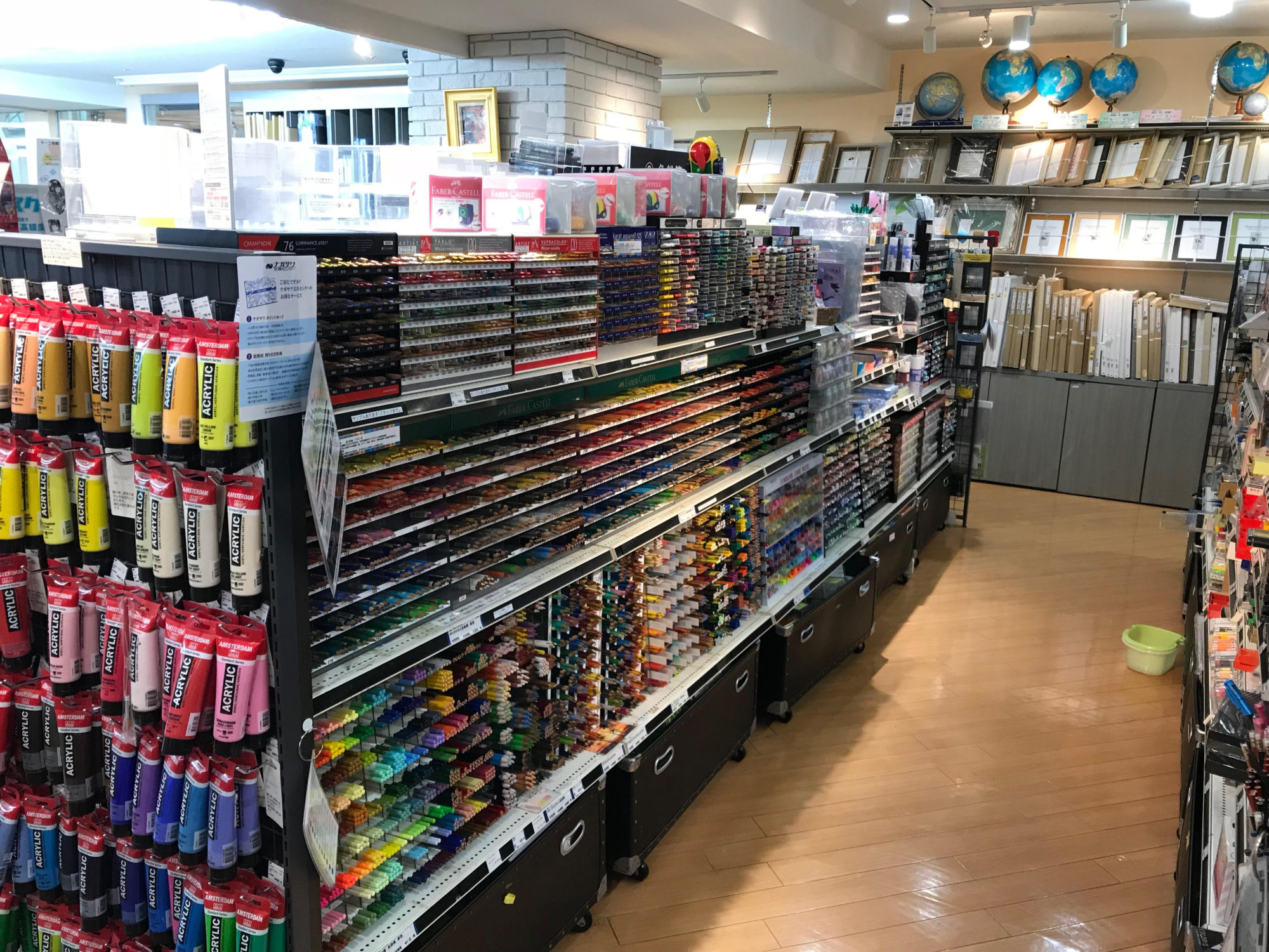 額縁の品揃えもさることながら画材コーナーの充実やマスキングテープのコーナー等を拡大し画材のみならず