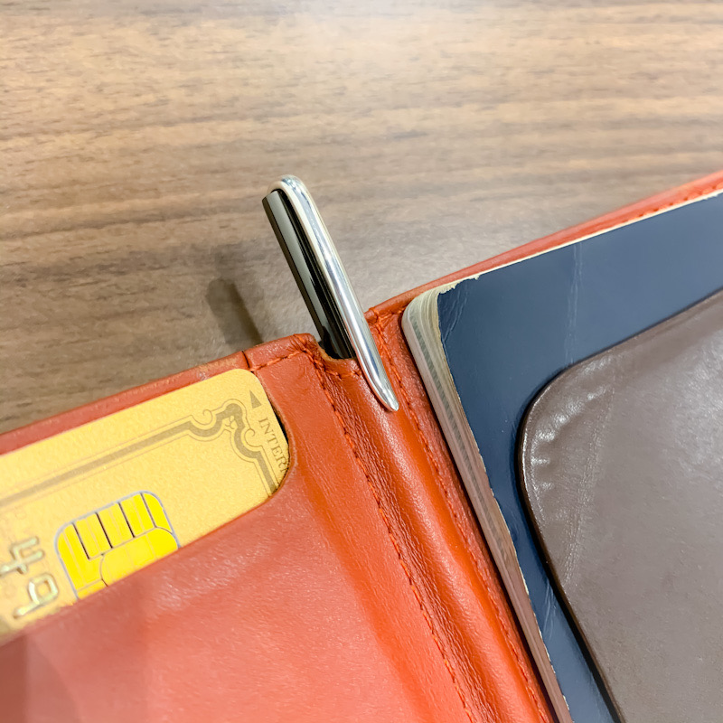 私は海外に行くと、ほぼずっとパスポートを持ち歩きます。これはアメリカに住んでいた時の癖ですね。海外では何かと面倒くさいことがあり、IDを見せないとタバコも買えなければ、お酒も飲めなかったり、クラブやバーにも入れない。なので、今だに海外では常に毎日パスポートを持ち歩く癖が抜けません。昔は怖いもの知らずだったので、そのままパスポートとカードと小銭と数千円だけポケットに入れて動いていましたが、今は流石にそういうわけにも行かないかなと。そんな時に出会ったのがこのトラベルウォレットでした。パスポート、カード、札束が入ってSIMMカード入れ、ミニペンがついて、この驚異的な薄さです。本当に薄い財布です。まさに海外旅行のための財布のような気がします。