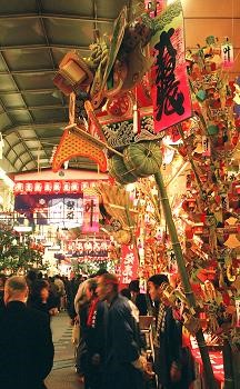 期間中はあちこちで(こまざらえ)と呼ばれる縁起物の熊手が販売されます。