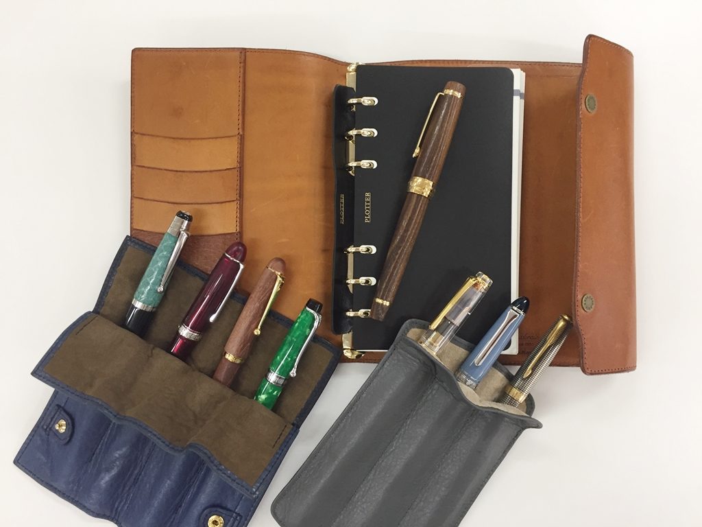 続いては、色合いが素敵なノックスブレインの4本差しペンシースに左から、伊シグナム(ターコイズの