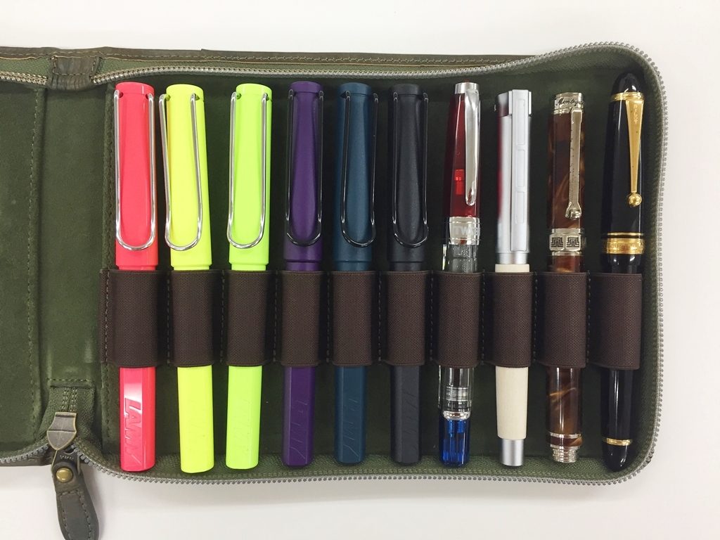 アッシュフォードの10本差しケースに入っているのは、ラミーサファリが6本、台湾のツイスビー、
