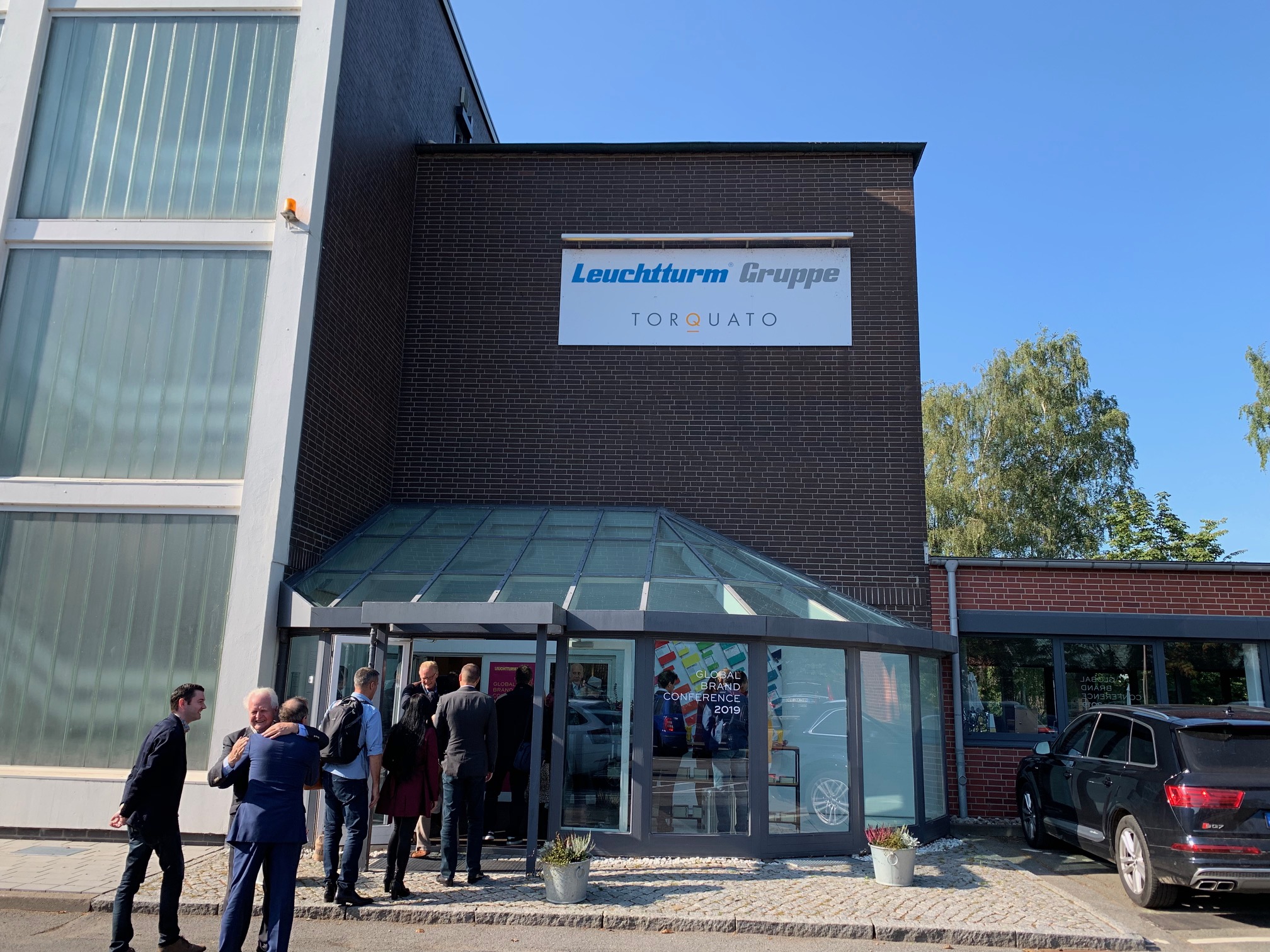 煉瓦作りの素敵な本社事務所で玄関先では、LEUCHTTURM社の会長・社長様 スタッフの皆様のお出迎えして頂きました。