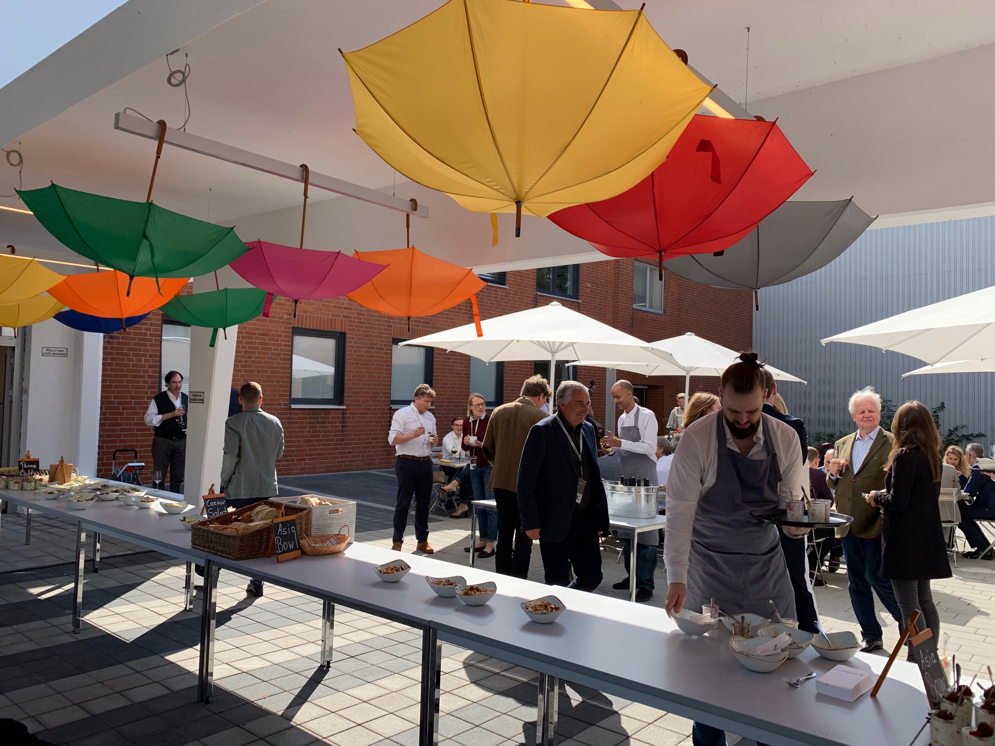 午前の部を終えると昼食の時間になり本社社屋の中庭でパラソルを広げた素敵な空間で皆様と一緒に美味しい昼食を頂きました。