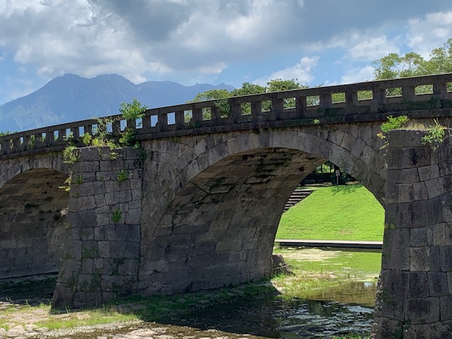 石橋は江戸時代末期に城下整備の一環として熊本の(当時は肥後)の名石工岩永三五郎によって架橋が実現した歴史的所産です。