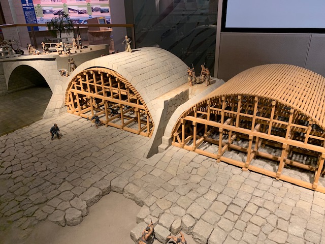 1階の展示室では、石橋の歴史や技術が学べるようになっており橋の基礎や橋を作る過程のジオラマがありたのしく学ぶことができるようになっています。