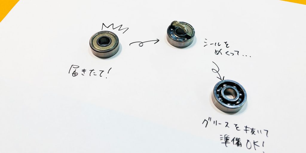 ちなみに上級者コースはベアリング(中央の回転するパーツ)をしっかり回るように加工する所から始まります!