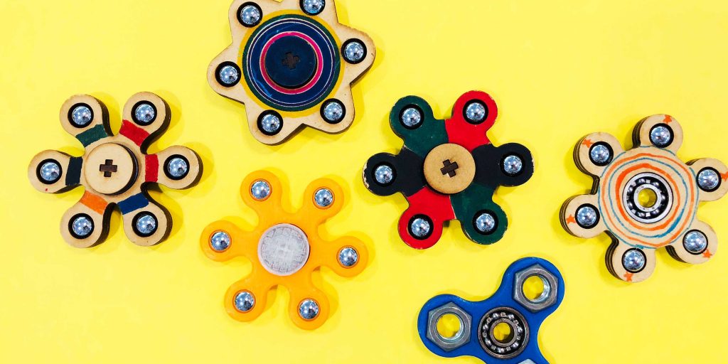 まずはハンドスピナーが作られた目的や仕組み、ヒットの背景などのお話をして…
