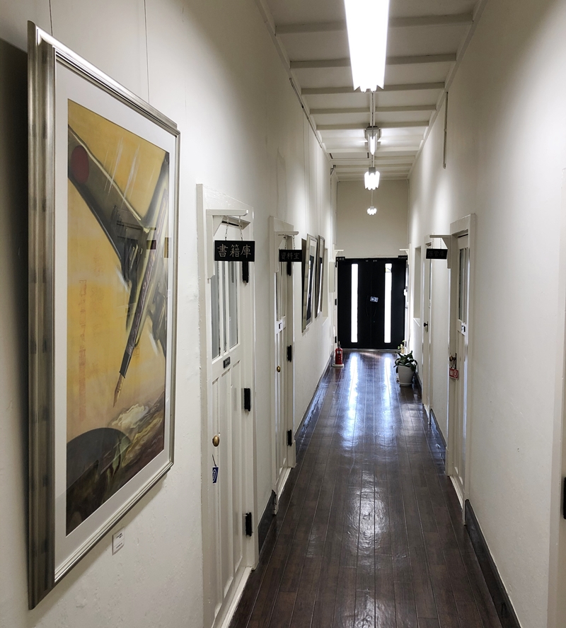 そしてその奥には、実際に蒔絵万年筆を製造している各工程ごとに部屋が分かれ作業の様子を廊下から窓越しに見学することができました。見てください、このレトロな雰囲気を。建物内は火薬廠として利用されていた当時の構造をそのままに大切に利用していると伺いました。