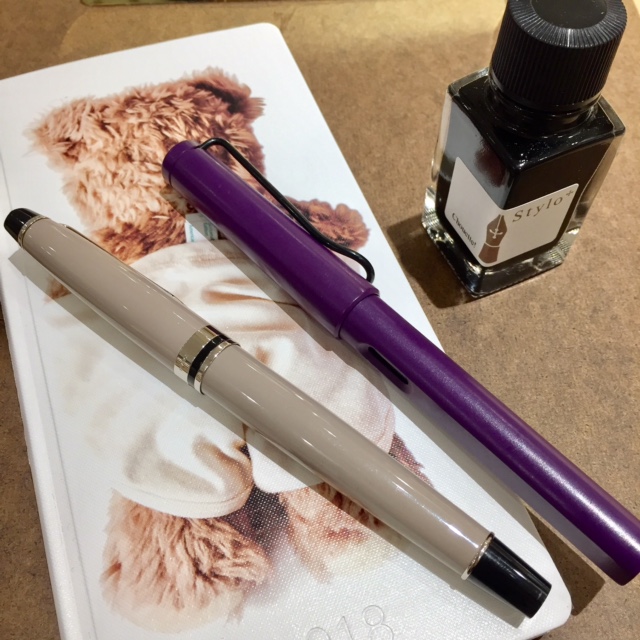 仕事中に使うのはラミーのサファリ2016年限定サファリ・パープルとウォーターマンのエキスパート・トープです。他にも用途に合わせて色々使うんですが、ラミーのカジュアルな親近感とウォーターマンのトープが持つ凛とした品格は自分の中に持っていたい人間像の様な気がしています。