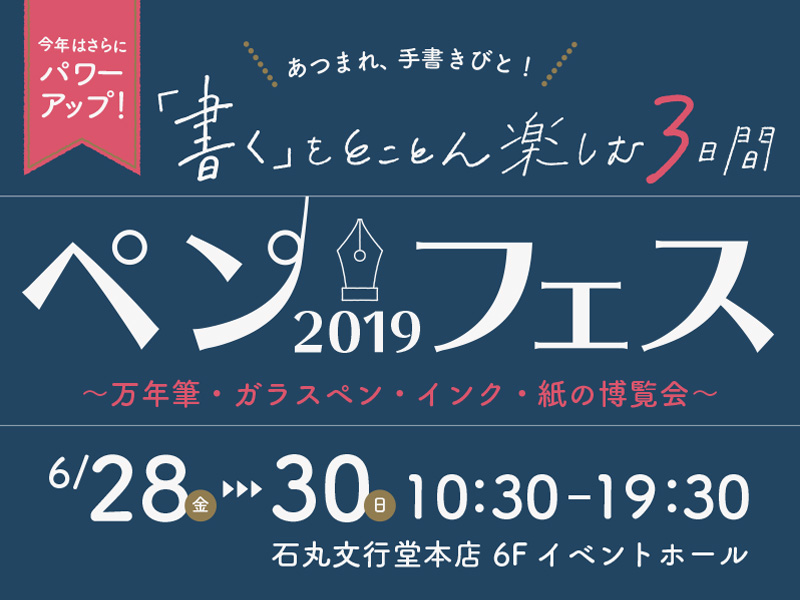 本日28日より三日間、「書く」をとことん楽しむイベント「ペンフェス2019」を石丸文行堂本店6階にて開催いたします!
