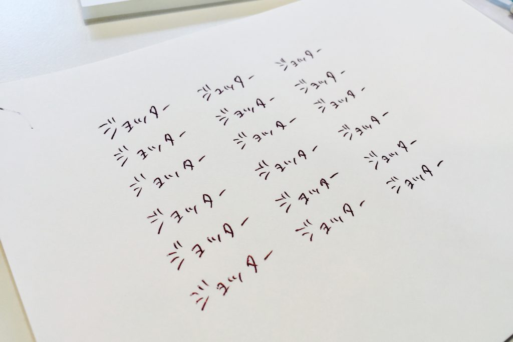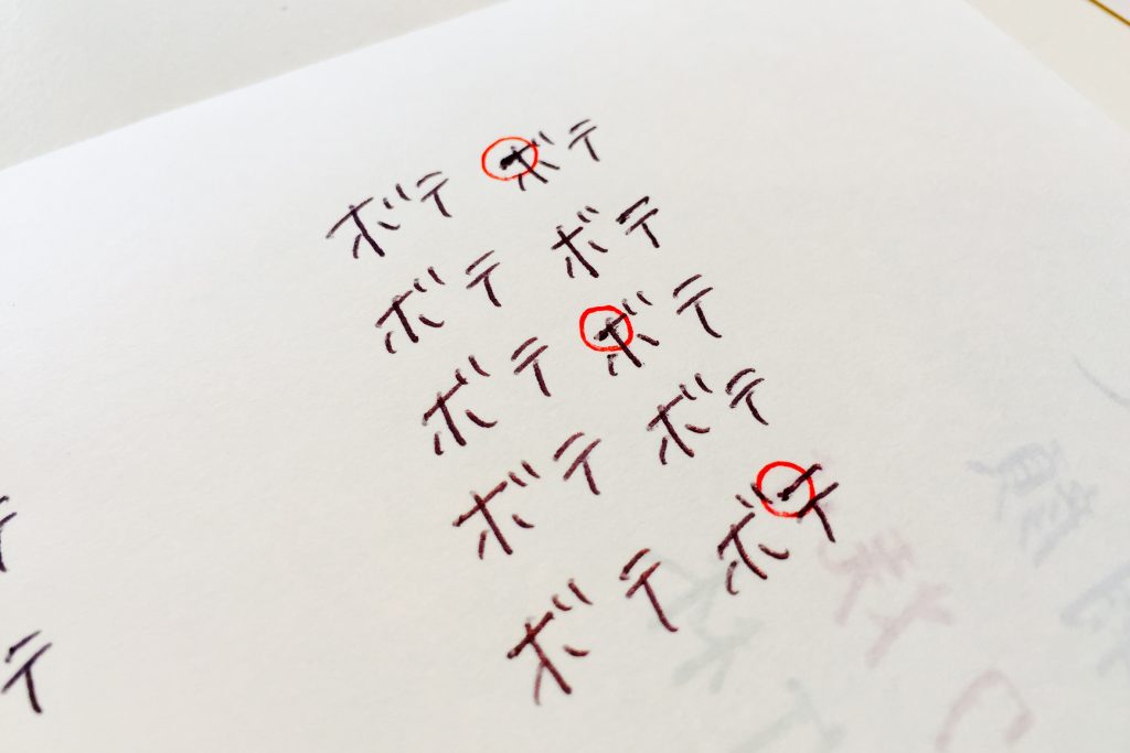 ちなみにボテというのは、↑のように書き出しの際にインクがブニュっと出てしまう事です!一般的な油性ボールペンの悪い点と言えば、このボテ問題が必ずと言っても良いほど上がります!※ちなみにこの画像も普通の油性ボールペンです
