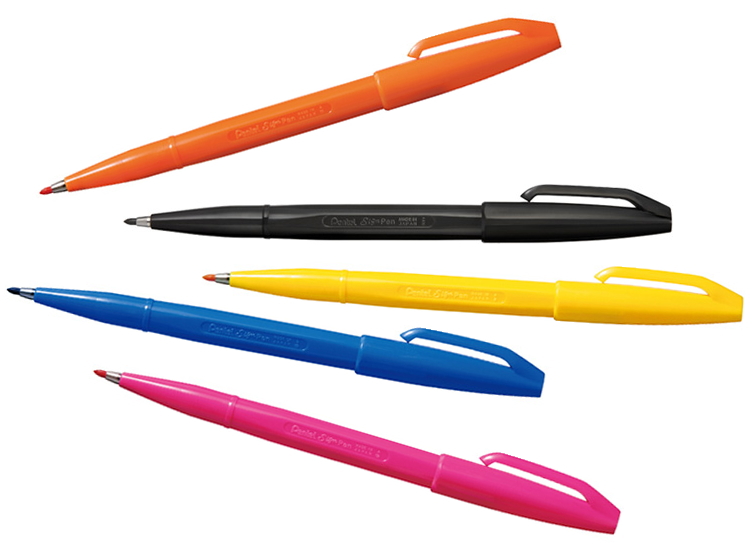 いつも常に机の上にある筆記具のひとつはこのサインペン達です。
