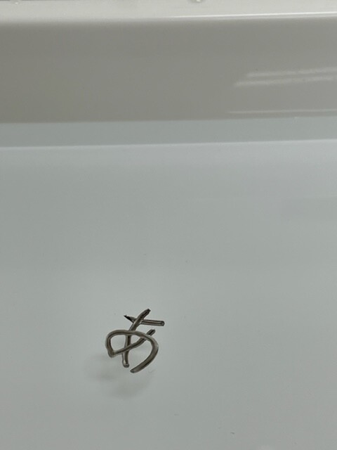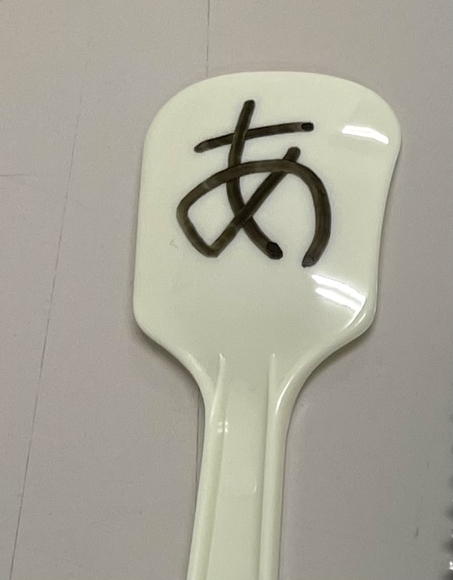 WBマーカーでアルミホイールやプラスッティクのスプーンなどに文字または絵を書いてその後、ゆっくりと水に浸けていくと....