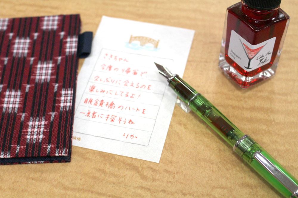 万年筆プレラパロットグリーンをもっと楽しもう!オリジナルそえぶみ箋とカラーインク
