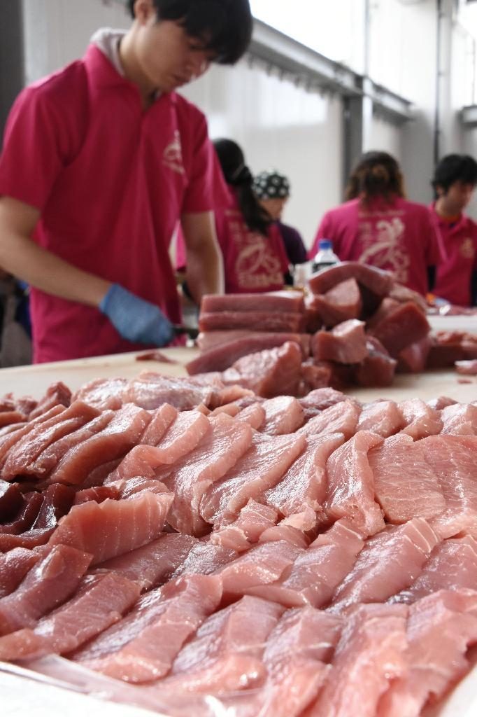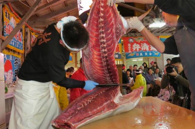 写真はこの時期よくイベントなどで見かける「マグロ解体ショー」!